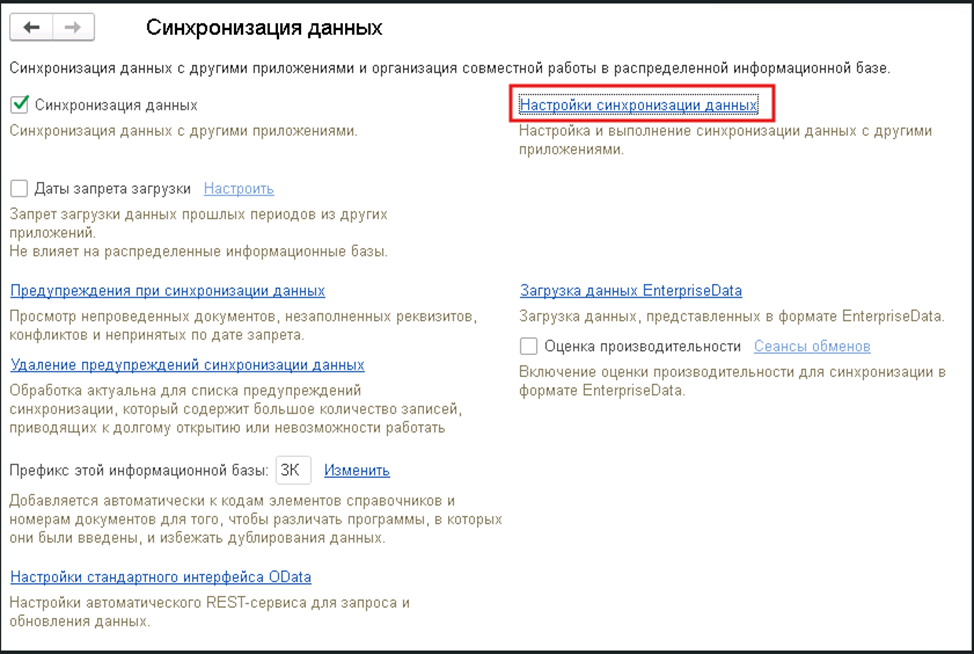 На открывшейся странице перейдите на вкладку «Настройки синхронизации данных».