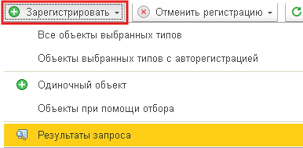 После нажатия кнопки «Зарегистрировать» откроется список вариантов регистрации: • Все объекты выбранных типов — регистрация всех объектов указанного типа.