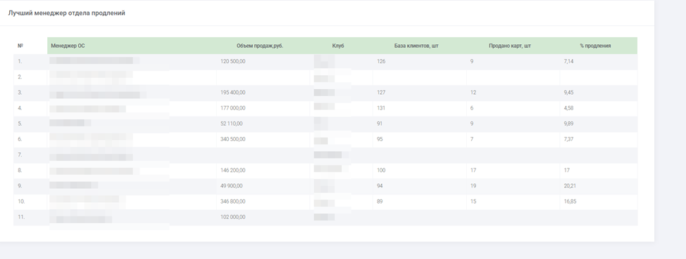 - данные по менеджерам, отделам и клубам (при сетевой структуре).