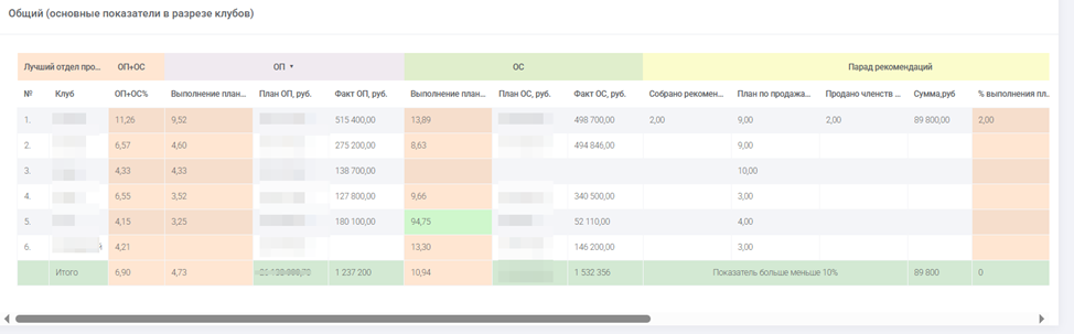 - сложность сравнения эффективности менеджеров в сети клубов.