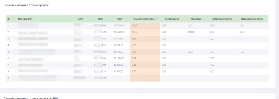 1.Каждый менеджер видит свой рейтинг и прогресс в реальном времени.