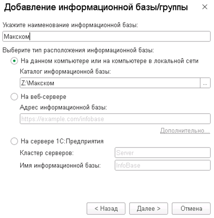 Как добавить информационную базу в 1С: файловую, серверную и опубликованную