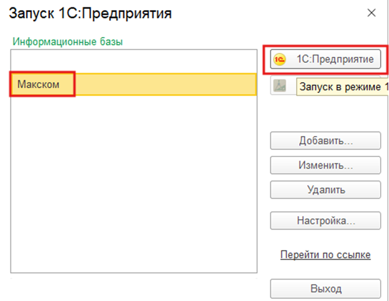 Запустите 1С и войдите в базу данных в режиме «1С:Предприятие»