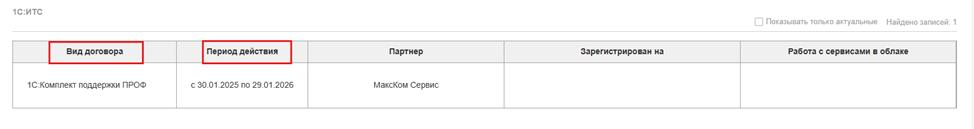 Способ 2. Проверить договор ИТС на портале 1С