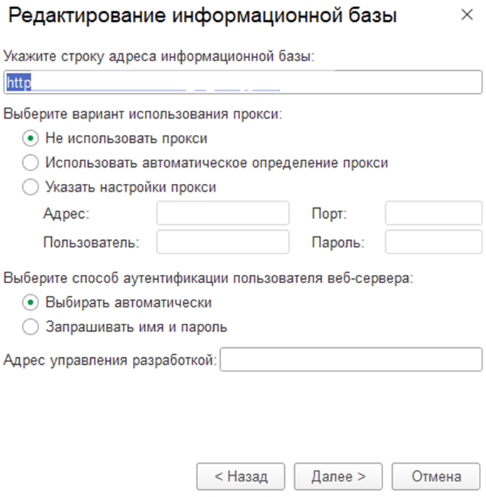 Полезная информация: если в момент добавления базы в буфере обмена у вас сохранен URL-адрес (например, вы скопировали ссылку на базу из письма или браузера), программа попытается автоматически определить тип расположения и подставить адрес
