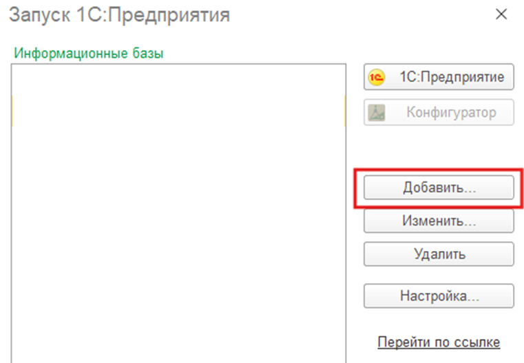 Если в списке уже есть базы, нажмите кнопку «Добавить» в правой части окна.
