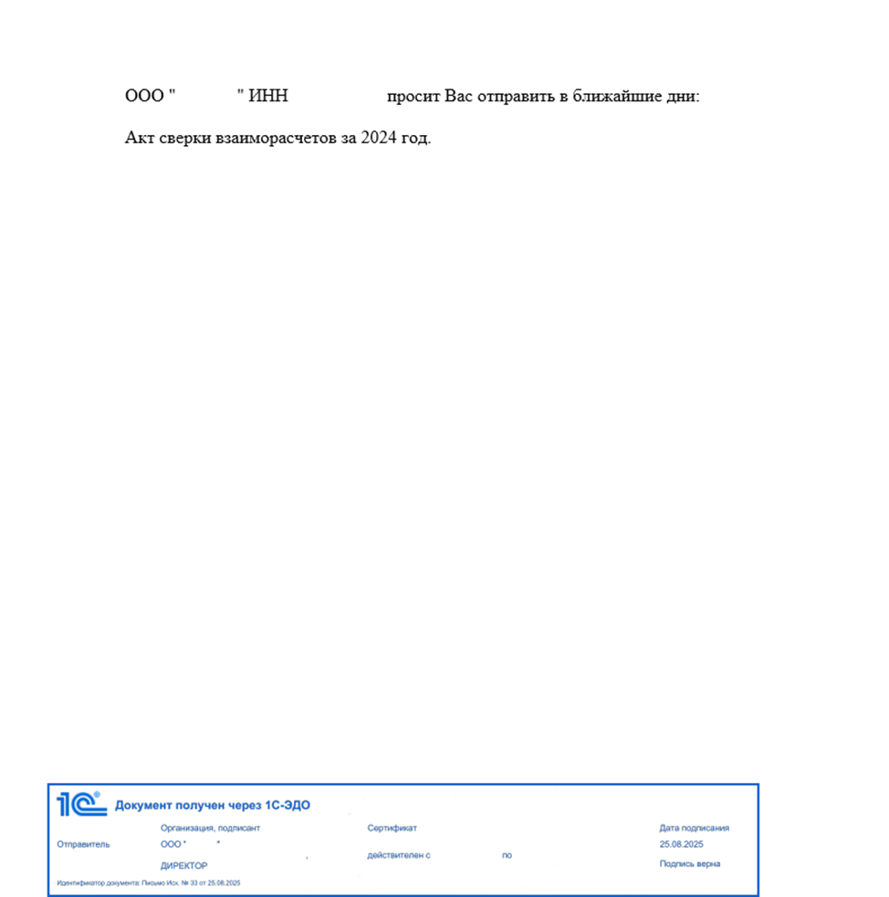Например, вам прислали в 1С-ЭДО файл формата .doc (Microsoft Word). С использованием сервиса 1С:Штамп при открытии этого документа мы получим PDF файл со штампом ЭЦП снизу. Вы также можете подписать документ, и отобразится штамп вашей ЭЦП.