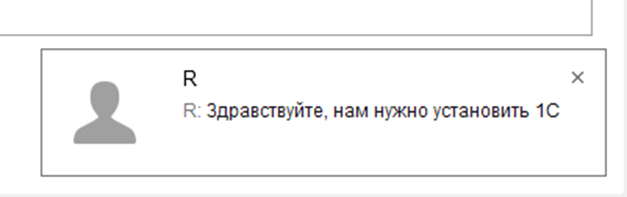 9) В базе 1С у пользователя, который состоит в обсуждении, в правом нижнем углу появится уведомление с именем собеседника и его сообщением